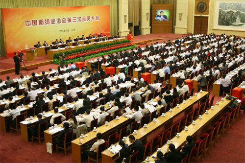 中国期货业协会第三次会员大会于9月20日在京举行。中国证监会主席尚福林、证监会主席助理姜洋出席会议并发表重要讲话,证监会主席助理吴利军、国家民政部民间组织管理局副局长李勇出席了会议。来自证监会各部门、派出机构、证券、期货交易所、证券登记结算公司、投资者保护基金、期货保证金监控中心、北京市金融工作局、相关行业协会、业界专家、全国期货公司以及地方证券期货业协会等单位的300名代表参加会议。