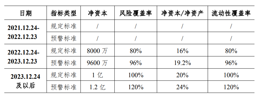 期货风险管理公司风险控制指标各阶段监管标准