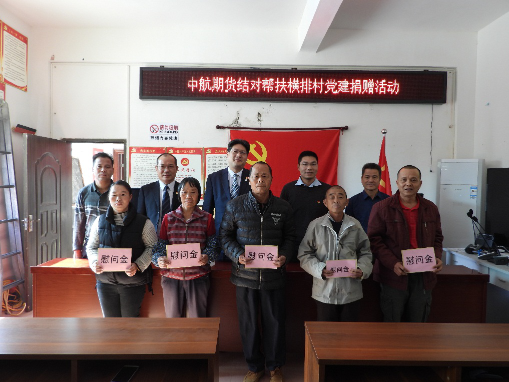培训结束后,中航期货一行来到横排村党群服务中心听取了横排村脱贫工作的进展情况,横排村第一书记林华清同志表示现在正是脱贫工作最吃劲之时,希望中航期货今后继续加强与深圳证监局和横排村委合作,全面打赢脱贫攻坚战。随后,在会议现场,村委代表的见证下党支部书记、董事长汤喆,副书记、总经理王子洪向横排村贫困户派出了慰问金,并代表公司捐助电教设备,完成中航期货乡村振兴技能培训室和结对帮扶活动基地的揭牌。