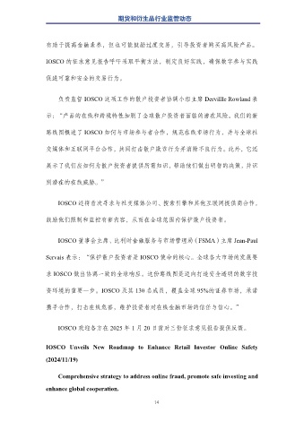 负责监督 IOSCO 这项工作的散户投资者协调小组主席 Dervillle Rowland 表