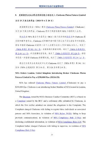 8. 美国期货业协会要求英国伦敦介绍经纪人 Clarksons Platou Futures Limited