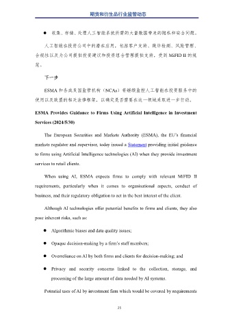 ESMA 和各成员国监管机构(NCAs)将继续监控人工智能在投资服务中的