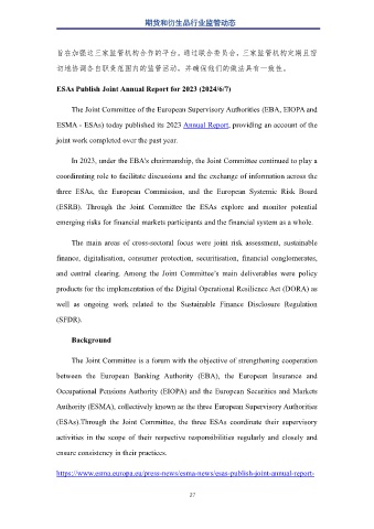 ESAs Publish Joint Annual Report for 2023 (2024/6/7)