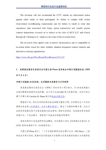 3. 美国商品期货交易委员会代理主席 Pham 宣布执法冲刺计划圆满完成(2025