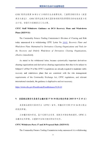 9. 美国商品期货交易委员会撤回第 37 和 38 部分规定草案(2025 年 9 月 15 日)