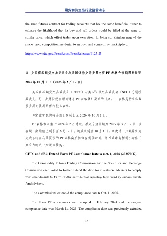 11. 美国商品期货交易委员会与美国证券交易委员会将 PF 表格合规期限延长至