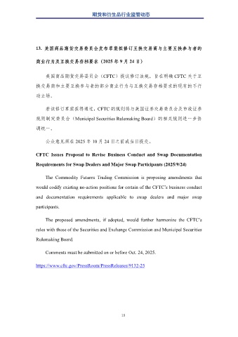 13. 美国商品期货交易委员会发布草案拟修订互换交易商与主要互换参与者的