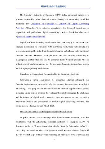 promote responsible online financial content sharing and advertising. MAS has