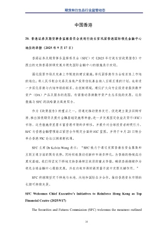 20. 香港证券及期货事务监察委员会欢迎行政长官巩固香港国际领先金融中心