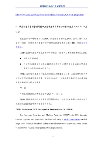 4. 欧盟证券与市场管理局就中央对手方参与要求公开征求意见(2025 年 10 月