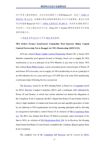 员会还指控 Rimar LP 违反了《NFA 注册规则》第 208 条,未及时向 NFA 报告公