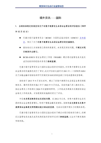 1. 全球标准制定机构发布关于非集中清算衍生品保证金要求的评估报告(2025