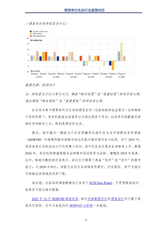 受访者表示实际活动水平仅有微小变动,其中衍生品及债务证券略有上升。展望