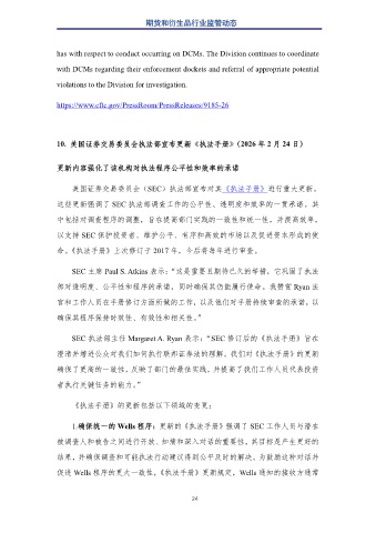 10. 美国证券交易委员会执法部宣布更新《执法手册》(2026 年 2 月 24 日)