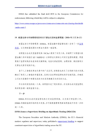19. 欧盟证券与市场管理局发布关于算法交易的监管简报(2026 年 2 月 26 日)
