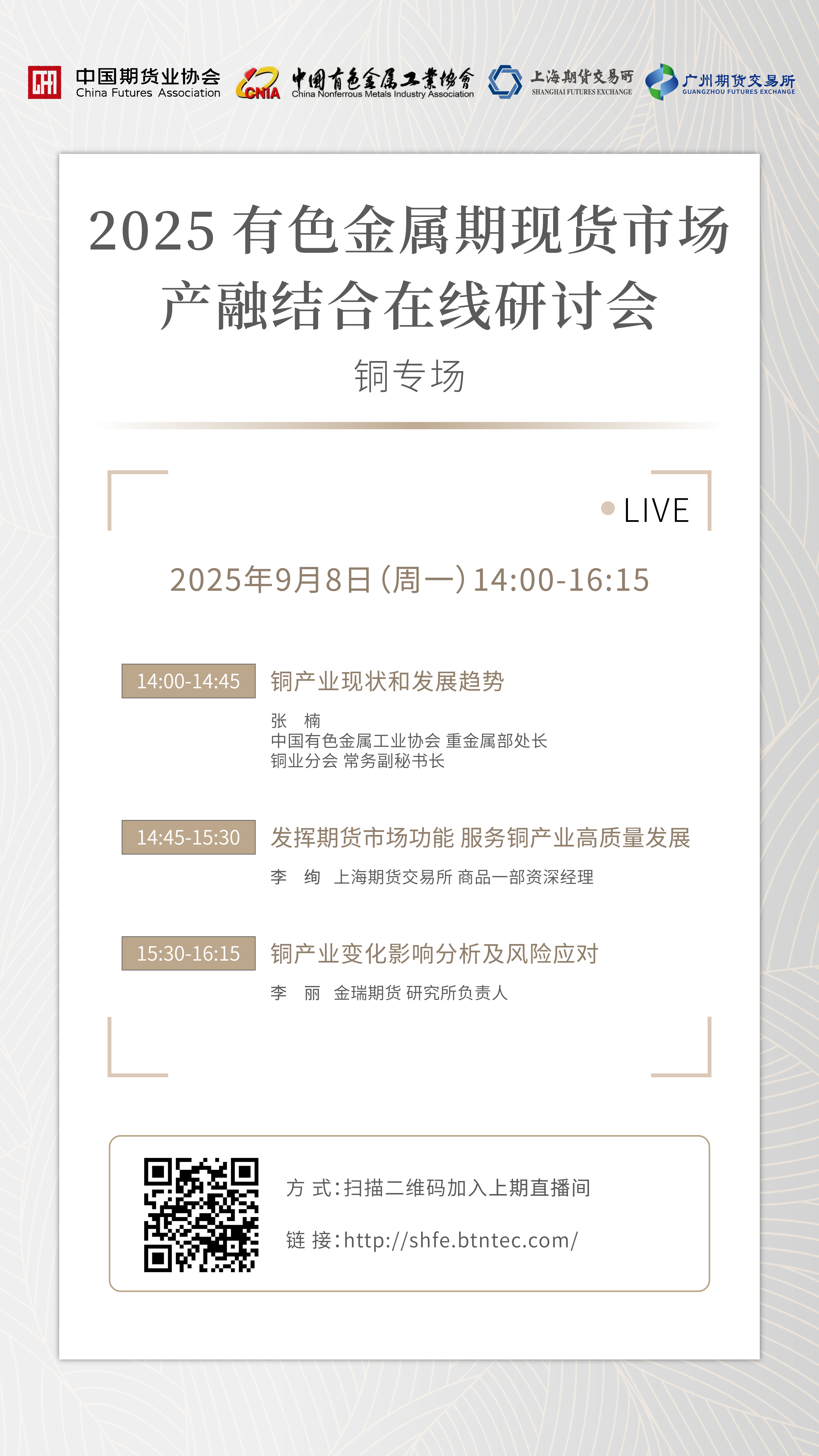关于举办“2025有色金属期现货市场产融结合在线研讨会--铜专场”的通知
