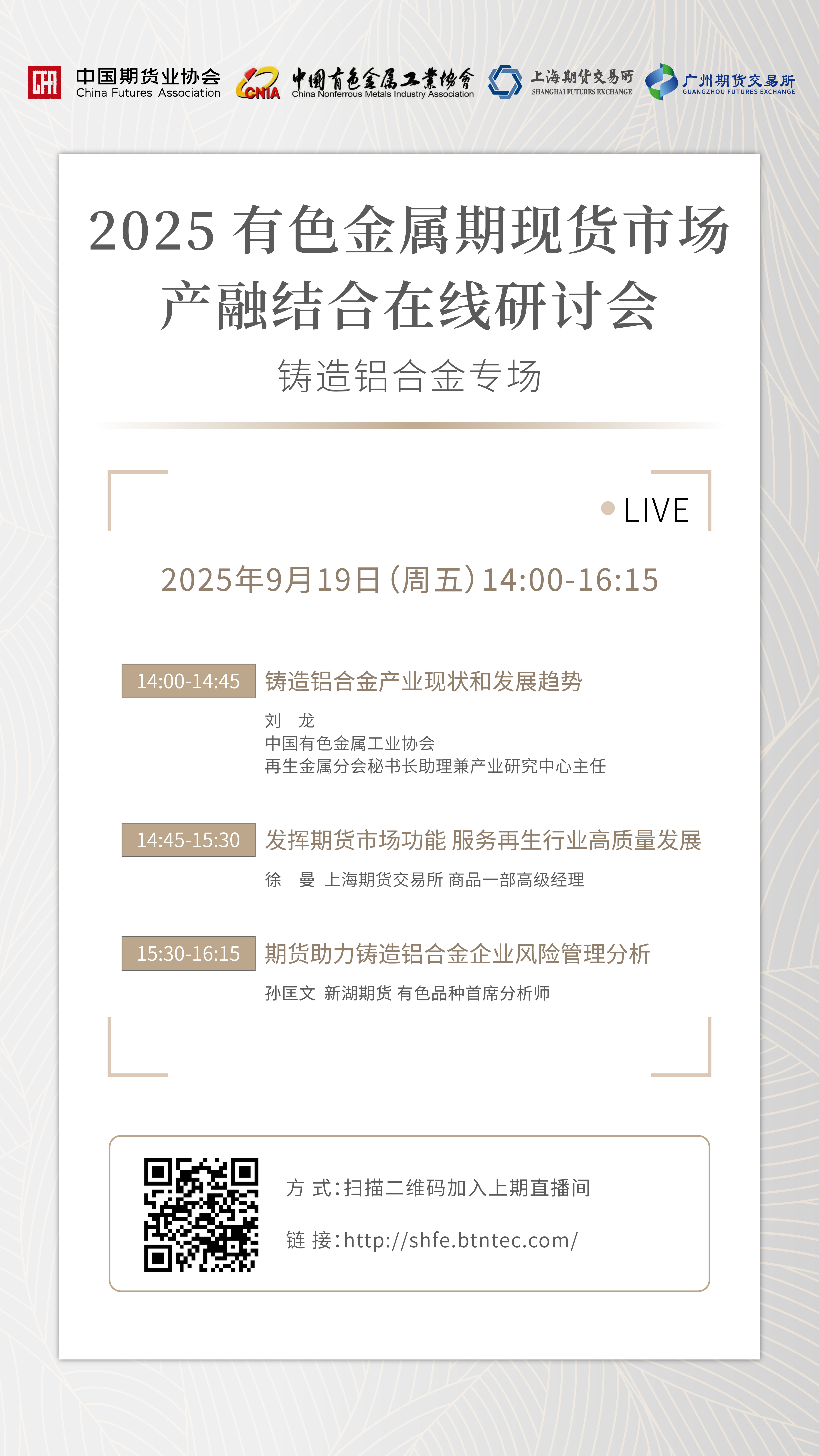 关于举办“2025有色金属期现货市场产融结合在线研讨会--铸造铝合金专场”的通知