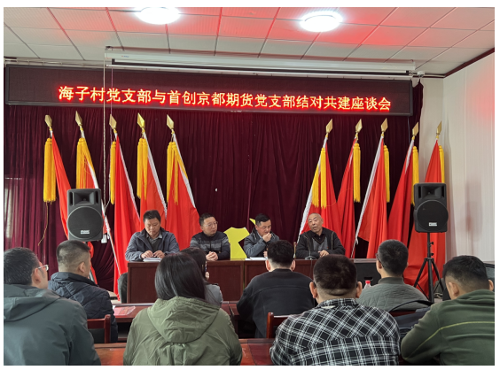 近日,首创证券党委召开了学习贯彻习近平新时代中国特色社会主义思想主题教育动员部署会,为落实会议精神,4月23日,首创京都期货公司党支部通过开展支部结对共建座谈会的形式,组织全体党员和积极分子走进股东首创证券结对帮扶村平谷区金海湖镇海子村党支部,将主题教育与“助力乡村振兴”相统一,将理论学习与社会实践相结合,立足金融服务实体经济发展的初心,践行国有企业振兴首都新农村发展的责任担当,深度融入北京发展大局。