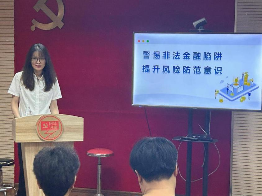 随后,宁证期货法务专员杨赵培围绕 “警惕非法金融陷阱,提升风险防范意识” 授课,结合非法金融活动新动向,剖析虚假期货平台、“保本高息” 骗局等典型案例的危害,传授 “三看、三查、三问” 防范技巧,强调 “不听、不信、不转账” 反诈底线,引导居民发现疑似情况及时举报。