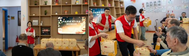 护长者健康的护理员们致以崇高的敬意。党支部组织委员沈良送上象征着团圆美满的节日慰问品,为活动现场增添一份喜悦与温馨。