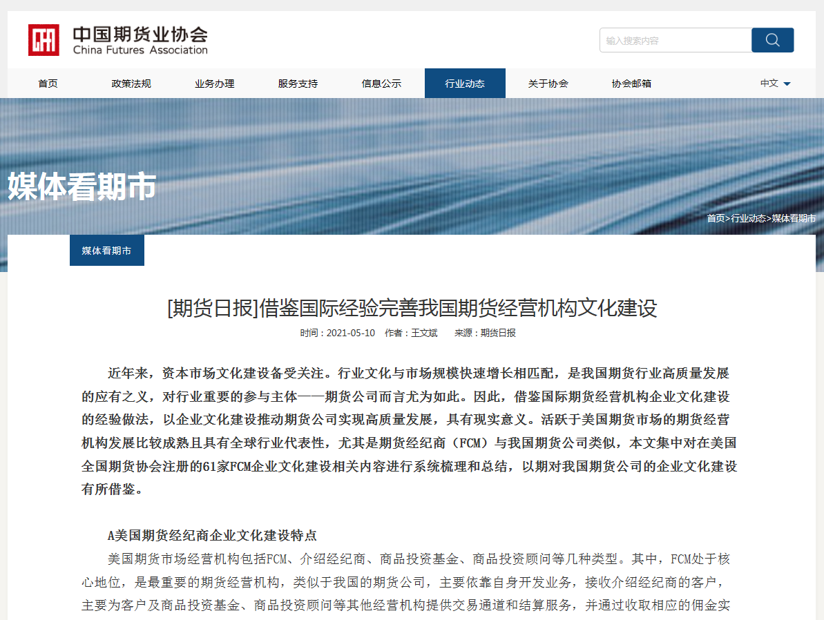 [期货日报]借鉴国际经验完善我国期货经营机构文化建设