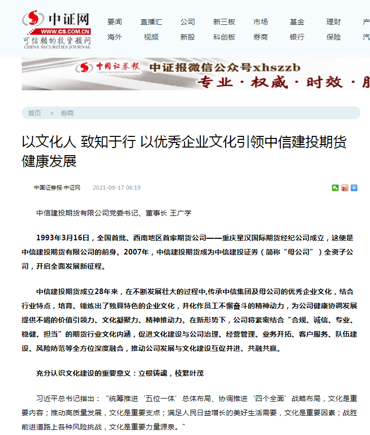 [中国证券报]以文化人 致知于行 以优秀企业文化引领中信建投期货健康发展