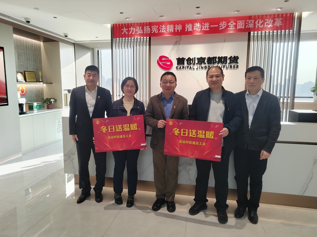12月11日,朝阳区亚运村街道办事处工委副书记水伟一行来到首创京都期货有限公司开展冬季送温暖活动。首创京都期货党支部书记、总经理李强,代表全体员工,对公司驻地街道领导的到来表示了热烈欢迎,对领导们的关怀表示了衷心感谢。