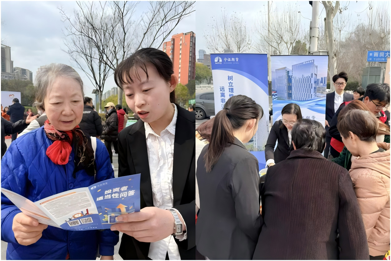为进一步提升社区居民金融素养,增强非法证券期货活动防范意识,切实守护群众的 “钱袋子”,3 月 11 日,宁证期货走进南京市建邺区双和园社区,开展 “远离非法证券期货陷阱 树立理性投资观念” 主题投教宣传活动,通过趣味互动、案例讲解、互动答疑等形式,为社区居民送上通俗易懂的金融知识大餐,活动聚焦老年人群体,针对性普及防骗技巧与维权渠道,获得社区居民广泛好评。