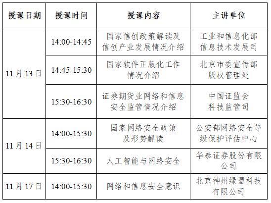 (一)11月13日、14日下午:期货公司分管信息技术工作的高管人员、信息技术部门负责人、总部信息技术人员。