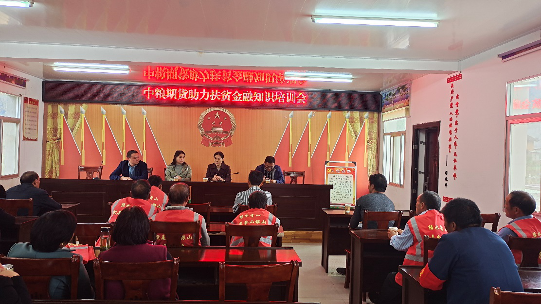 活动当日,中粮期货工作组一行与太湖县扶贫办召开了帮扶工作座谈会。会上,太湖县领导就该县脱贫攻坚工作开展情况、集体经济发展现状和公共服务情况进行了介绍,深刻剖析了该县发展的薄弱环节和下一步扶贫攻坚重点。中粮期货首席风险官王红梅充分肯定了太湖县脱贫攻坚成效,代表公司愿与太湖县一道,积极为重点帮扶的桥冲村全面发展共谋出路。同时,中粮期货首席风险官王红梅还结合个人在金融行业近20年的工作经验,重点围绕防范非法集资、反洗钱等相关金融知识进行了普及,受到了当地政府的热烈欢迎。