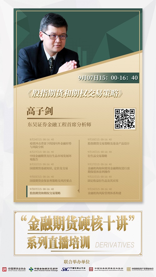 为适应金融期货业务的快速发展,满足行业对金融期货专业人才的迫切需求,中国期货业协会、中国金融期货交易所、中国证券业协会、中国证券投资基金业协会、中国保险资产管理业协会决定联合举办“金融期货硬核十讲”系列直播培训,现将第五期直播培训具体事项通知如下: