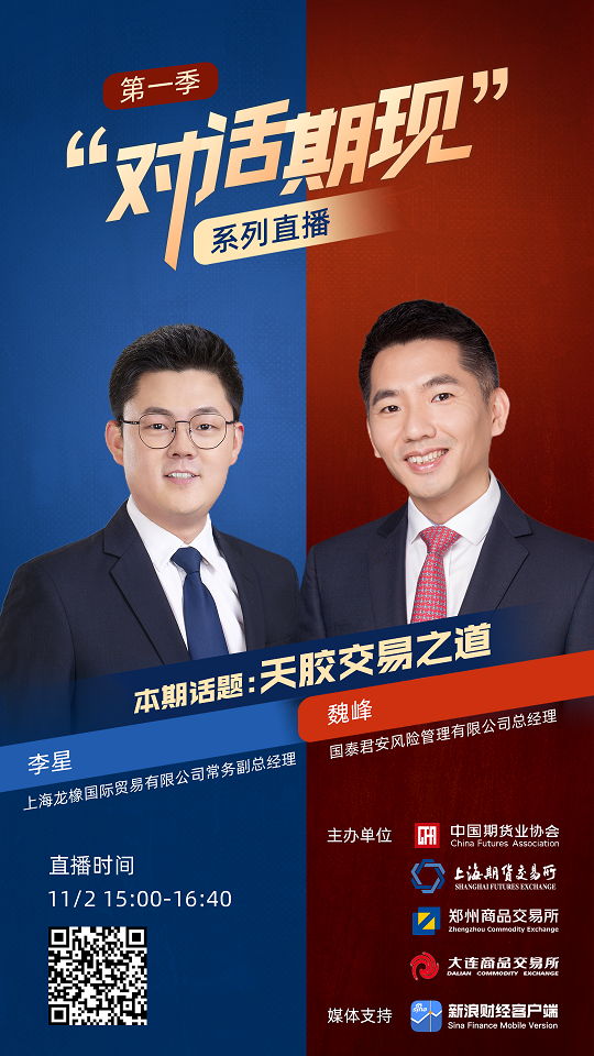 为加强期现结合人才培养,提升期货行业服务实体经济的能力与水平,中国期货业协会、上海期货交易所、郑州商品交易所和大连商品交易所决定联合举办“对话期现”系列直播培训,第一季直播培训共计7期,前6期为“课程培训+访谈对话”形式,于11月2日至19日期间的每周一和周四的15:00-16:40直播;第7期为“云上圆桌讨论”形式,于11月26日15:00-16:40直播。现将第一期直播通知如下。