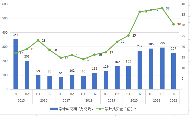 图1:2015-2022年内地期货市场成交量和成交额