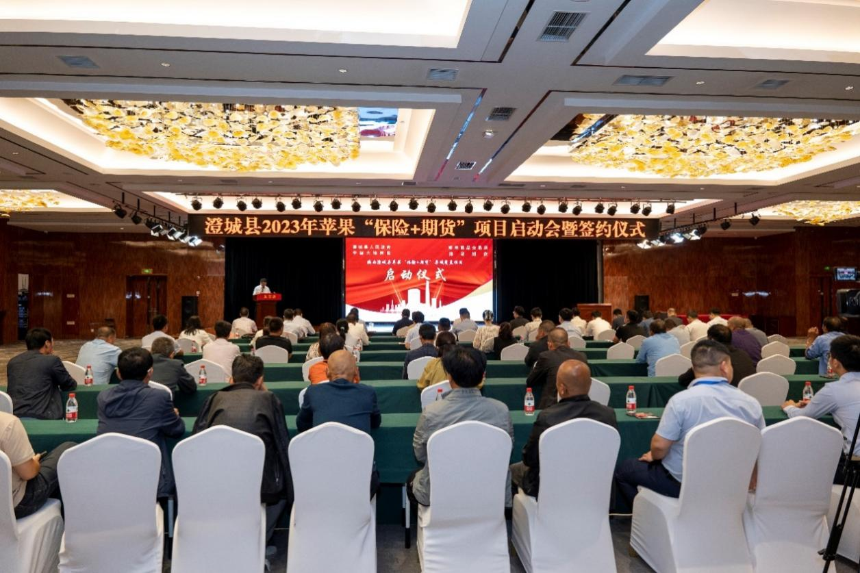 2023年9月12日,郑州商品交易所2023年陕西澄城苹果项目启动仪式在澄城县顺利举办。澄城县人民政府副县长杜占利,郑州商品交易所相关领导,以及海证期货、大地财产保险陕西分公司领导、相关业务负责人出席,与当地30多户果农代表共同见证了此次项目启动仪式。