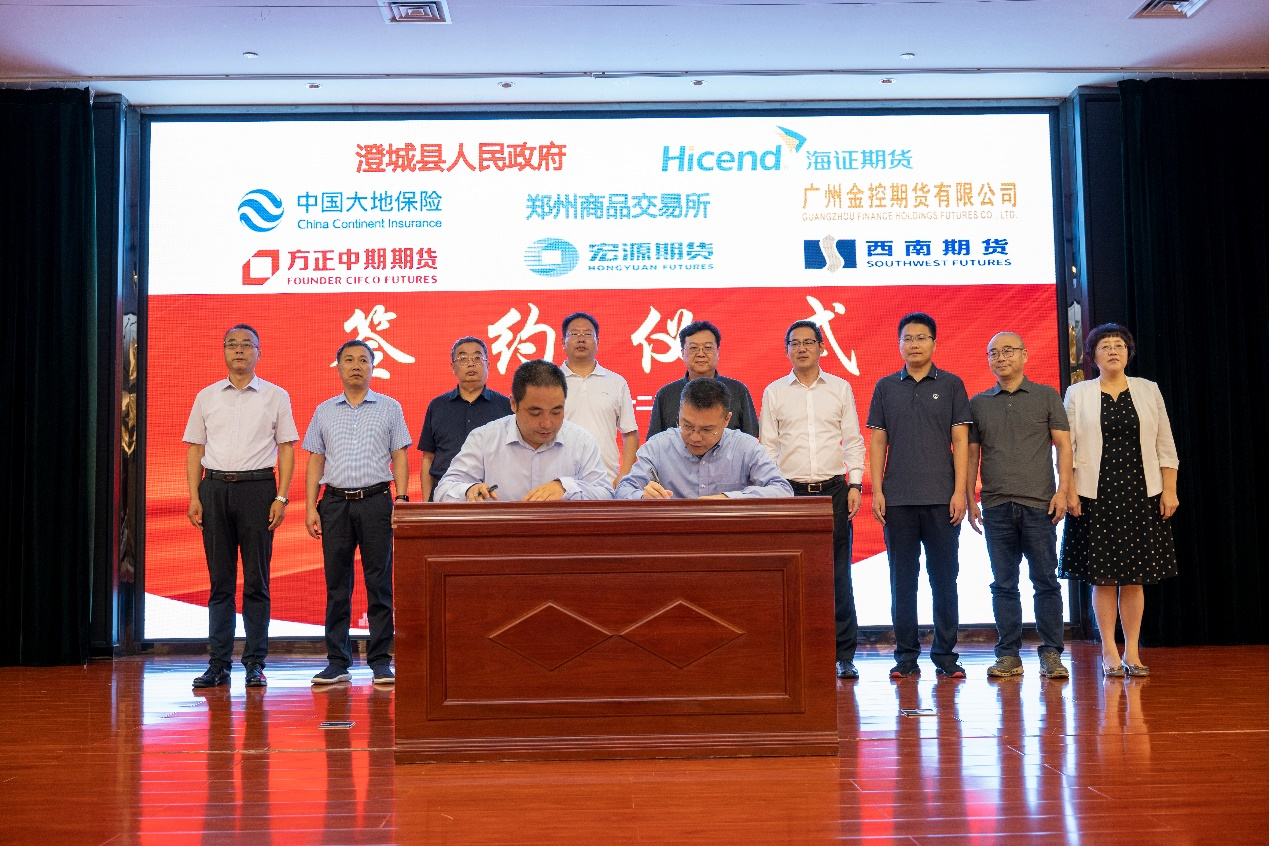 海证期货副总经理夏长远与澄城县农业农村局副局长习锋签署乡村振兴框架协议。