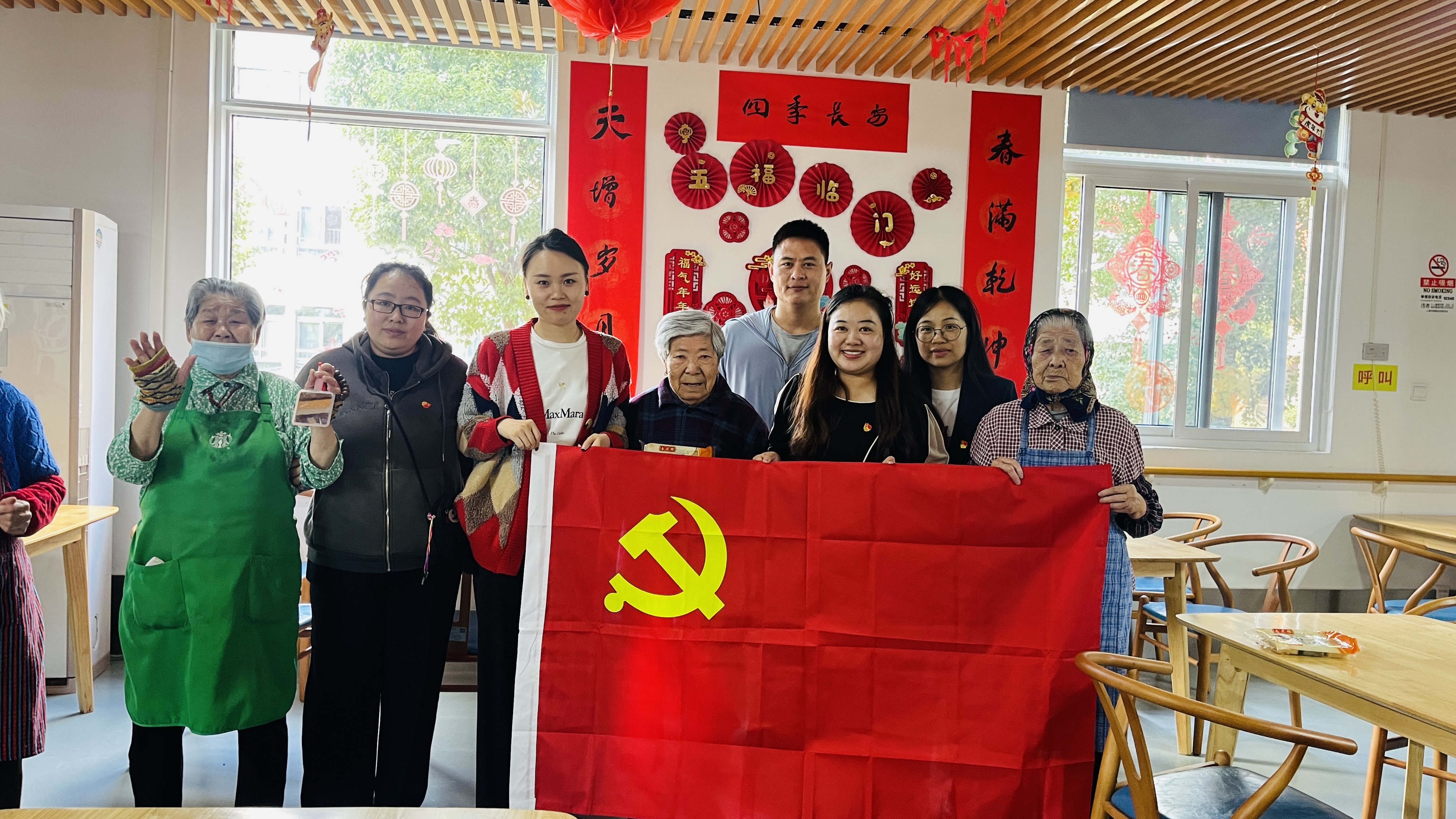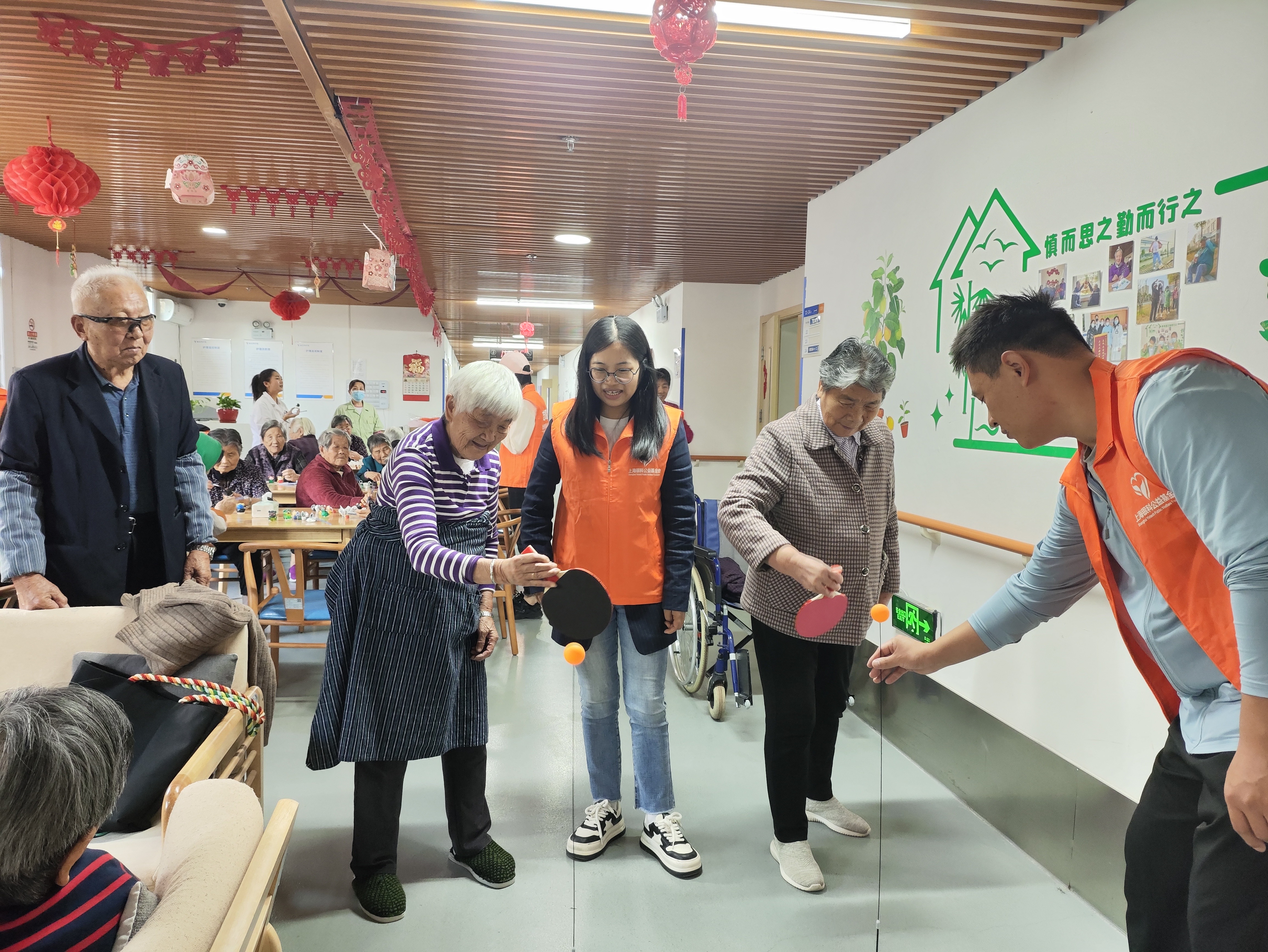 活动伊始,金信党支部的志愿者们,带着满腔热情来到了徐泾镇养护院。在老人们的热烈欢迎中,志愿者们纷纷展开各类有趣的互动。