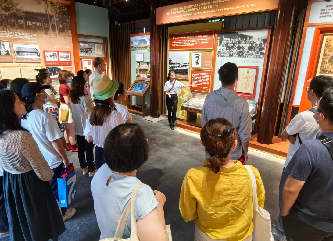 在参观过程中,同志们认真听取了讲解员对蒙藏学校历史的详细介绍。从学校的创立背景、发展历程,到在革命历程中的重要作用,每一段历史都让人深感震撼。特别是在讲解员提到蒙藏学校学生积极参与五四运动和李大钊、邓中夏等革命先驱对青年学生的影响时,大家更是深受触动。随后,同志们分别参观了学校的各个展区,通过一件件珍贵的文物、一张张泛黄的照片,大家仿佛穿越到了那个风起云涌的年代,感受到了革命先烈们的英勇无畏和坚定信念。在历经400多年风吹雨打的古枣树下,展示了李大钊正在为学校的师生们讲解《庶民的胜利》的场景,让同志们更加直观地感受到了那个时代学习新思潮的氛围。