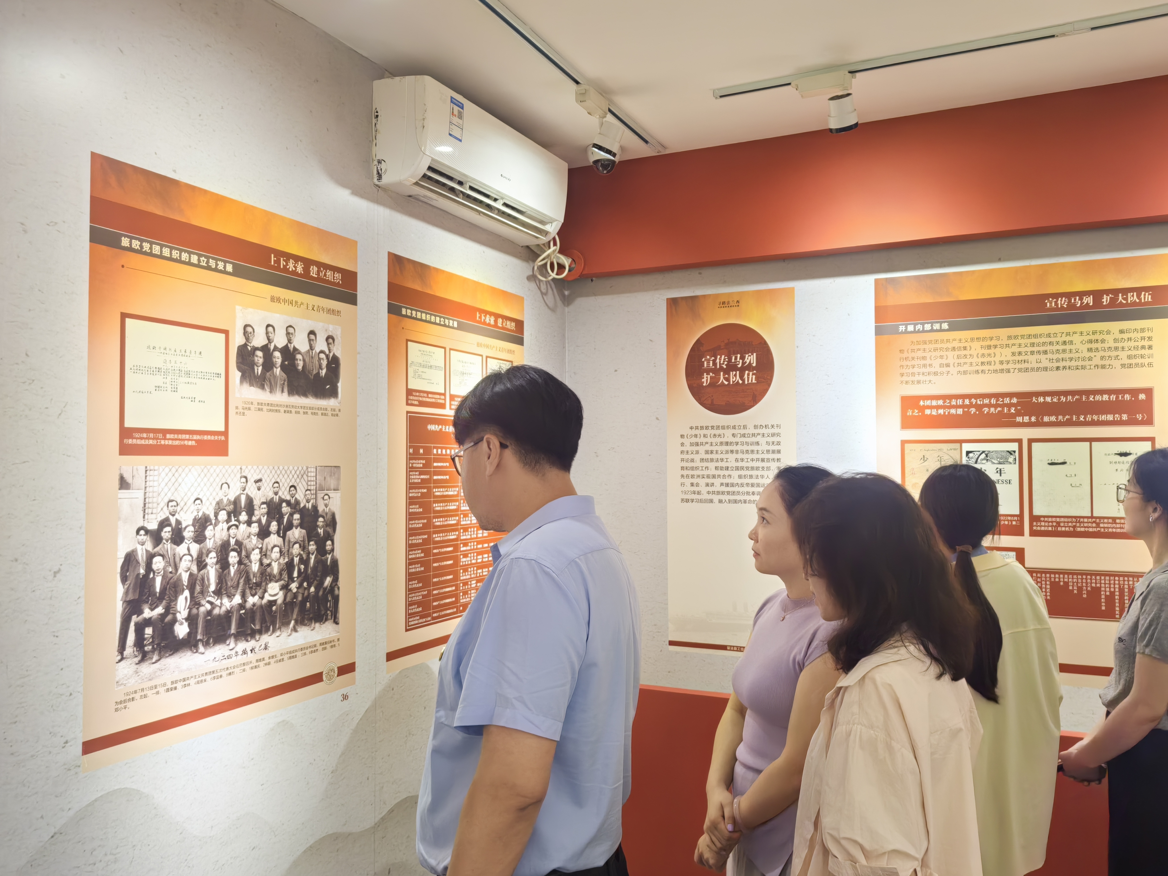 活动当天,党员们跟随讲解员的引导,参观了复原陈列室和辅助陈列室。展柜中的觉悟社社员抓阄用铁盘、马克思著作手稿、五四运动时期的传单等珍贵文物,生动还原了当时社员们“研究新思潮、探讨救国路”的火热场景。