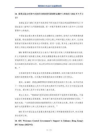 18. 香港证监会欢迎中央政府支持香港巩固国际金融中心的地位(2022 年 9 月 2